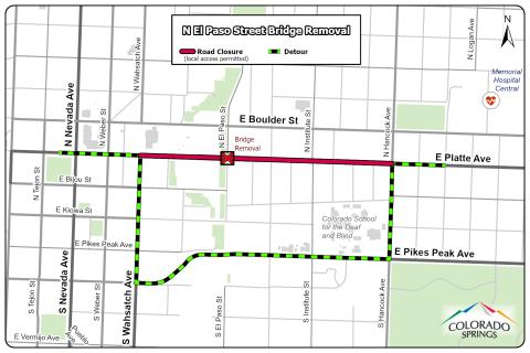 The City of Colorado Springs plans to remove the El Paso Street Bridge over Platte Avenue, starting on Saturday, Oct. 12.