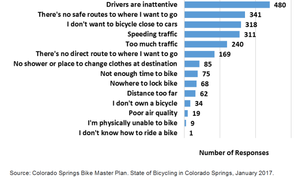 Summary of responses to the Questions: "Please indicate why you cannot or do not want to bicycle in Colorado Springs."