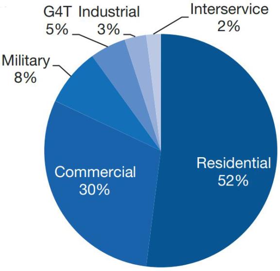 With nearly 170 square miles of military land in and around the City that employ or house over 175,000 people, the military is a clear economic driver for the region. This strong presence has both benefits and challenges. As the largest military installation, Fort Carson alone has an associated population of close to 125,000; with 26,282 on active duty and another 98,409 retirees, family members, and civilian employees. Many of these individuals live, shop or recreate in Colorado Springs. The impact of this presence can be seen in the workforce, job availability, services and housing type and tenure. Peterson Air Force Base is unique in that it is entirely surrounded by and included within our city limits. Through the Joint Land Use Study (JLUS), the City is collaborating with these institutions and planning for the areas surrounding the bases in order to support resident life on the bases. While the military bases are anticipated to continue to be a stable economic force, at some point overall City growth is expected to outpace military expansion. This will underscore the importance of leveraging the military presence to attract and target related industries.