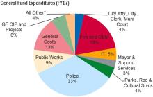 Year 2017 General Fund expenditures totaled $272 million with just over 50 percent spent on public safety. The costs shown do not include the additional funding of $32 million from the City’s dedicated Public Safety Sales Tax (PSST) and also does not include additional expenditures for the City’s 5-year voter approved “2-C” sales tax. Furthermore, the PSST ballot issue requires that the City expend at least 49% of its General Fund revenues on public safety.
