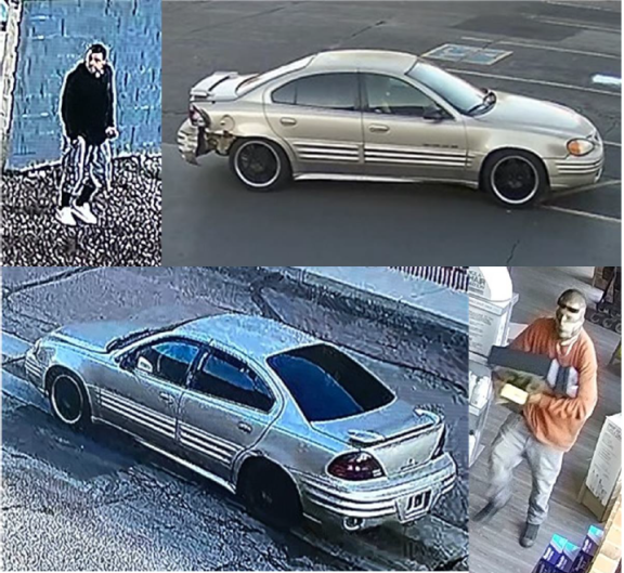 On September 30, 2022, at approximately 7:00 a.m. two suspects broke into a commercial business location in the 3800 block of north Academy Boulevard and removed an unknown amount of cash and hair care products. Suspect 1 is descripted as a White or Hispanic male, medium build, short brown hair, wearing a long black sleeve shirt and three-quarter pants. Suspect #2, is described as a White male, medium build, short hair, orange sweatshirt, gray pants, and a mask. A 2000’s silver, four door Pontiac Grand Am, with significant damage on the rear corner.